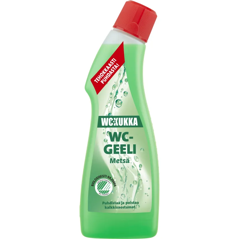 Свежий и чистый запах в туалете — одна из важнейших вещей, о которых нужно заботиться в доме. Средство для чистки туалета WC Kukka с ароматом леса — это эффективное средство, которое освежает унитаз и удаляет известковые отложения. Сертифицированное экологическим знаком Joutsenmerkki, оно является биологически разлагаемым и не содержит консервантов. Не подходит для мрамора и других деликатных поверхностей. Благодаря специальному носику легко дозировать необходимое количество. Безопасная детская крышка. Объем упаковки 750 мл.