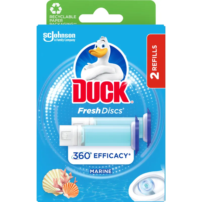 Duck Fresh Discs Marine не только освежает ваш туалет, но и заботится о его чистоте с каждым использованием. Уникальная формула помогает бороться с неприятными запахами и предотвращает образование налета, что делает ваш туалет сияющим и свежим надолго.