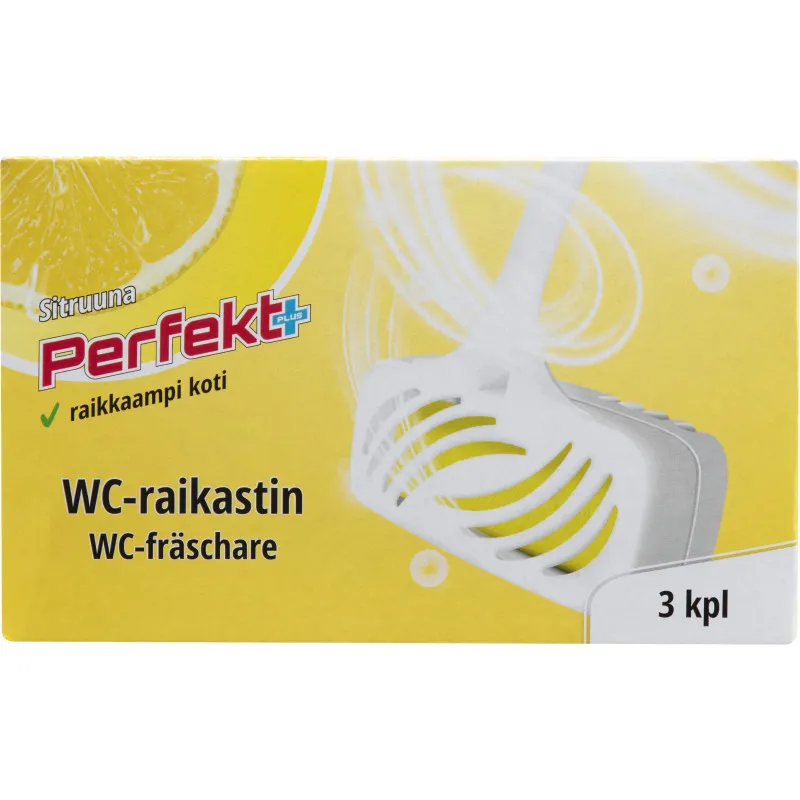 Perfekt+ WC-освежитель помогает поддерживать ваш туалет в чистоте и оставляет свежий лимонный аромат. Упаковка содержит 3 освежителя по 40 г. Обновляем информацию о продукте постоянно, но рекомендуем всегда проверять данные на упаковке.