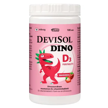 DeviSol Dino с витамин D3 с клубничным вкусом в форме динозавров является важным фактором для укрепления костной ткани, зубов, так же улучшает усвоение кальция и фосфора.