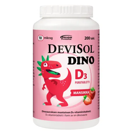 DeviSol Dino с витамин D3 с клубничным вкусом в форме динозавров является важным фактором для укрепления костной ткани, зубов, так же улучшает усвоение кальция и фосфора.