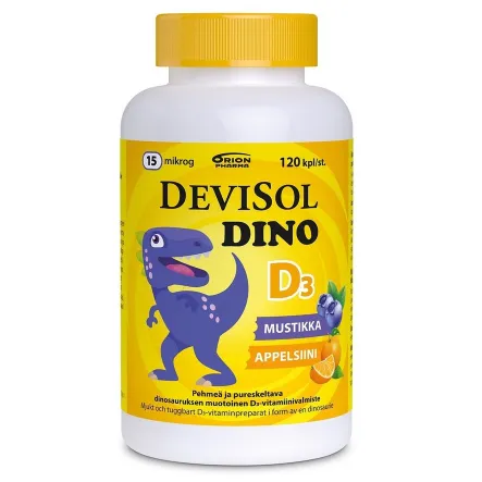 DeviSol Dino с витамин D3 со вкусом апельсина и черники в форме динозавров является важным фактором для укрепления костной ткани, зубов, так же улучшает усвоение кальция и фосфора.