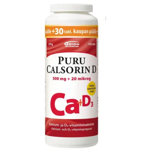 Витамины D3 + Кальций Puru Calsorin - это легко усваиваемый препарат, содержащий 500 мг (63 %) кальция, который укрепляет кости и 20 мкг (400 %) витамина D3, который улучшает усвоение кальция. Не забывайте о добавках кальция, если вы едите мало молочных продуктов или совсем не едите их.