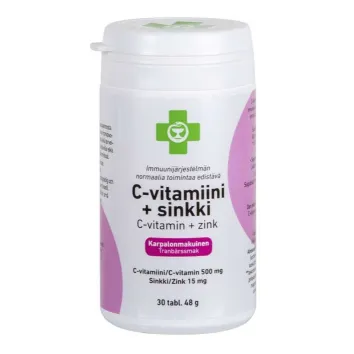 Витамины С + Цинк Apteekki - это пастилка со вкусом клюквы, содержащая витамин С и цинк, которые участвуют в нормальной работе иммунной системы. Они отвечают за поддержание иммунной системы на должном уровне; увеличивают ее сопротивляемость к различного рода инфекционным заболеваниям.