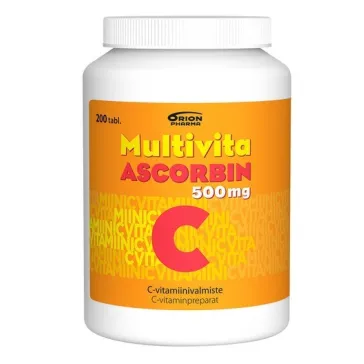 Multivita Ascorbin содержит аскорбиновую кислоту или витамин С. Витамин С - это водорастворимый витамин, который способствует росту и формированию костей и зубов. Он также действует как антиоксидант, то есть защищает организм от вредного окисления и способствует усвоению многих защитных питательных веществ. Витамин С помогает уменьшить усталость, а также поддерживает нормальный энергетический баланс организма и иммунную защиту, способствует, например, усвоению кальция. Его получают из пищи, например ягоды и цитрусовые. Потребность в витамине С возрастает при тяжелых физических нагрузках и жарком климате. Дефицит витамина С вызывает усталость и восприимчивость к инфекциям. Препарат витамина С подходит для использования, например, во время гриппа.