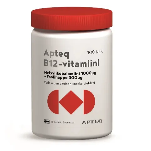 Витамин B12 Apteq также содержит фолиевую кислоту. Фолиевая кислота и витамин B12 усиливают функции друг друга в организме.