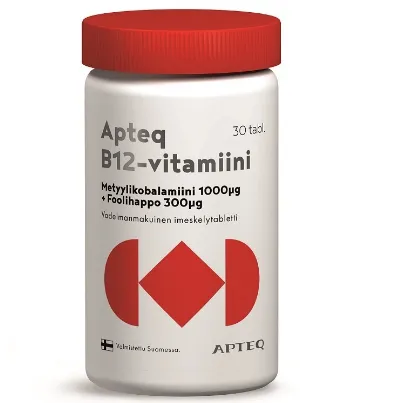 Витамин B12 Apteq также содержит фолиевую кислоту. Фолиевая кислота и витамин B12 усиливают функции друг друга в организме.