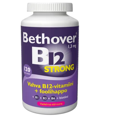 Bethoven Strong B12 малиново-лимонный - специально разработан для улучшения памяти. Содержит витамин В12, фолиевую кислоту, витамин В1, витамин В3, витамин В6 и биотин. Они способствуют нормальной работе нервной системы, нормальному функционированию психики. Витамины В3, В6 и В12, а также фолиевая кислота помогают снизить синдромы усталости. Идеально подходит для растительной диеты, поскольку витамин В12 естественным образом присутствует в значительном количестве только в продуктах животного происхождения.