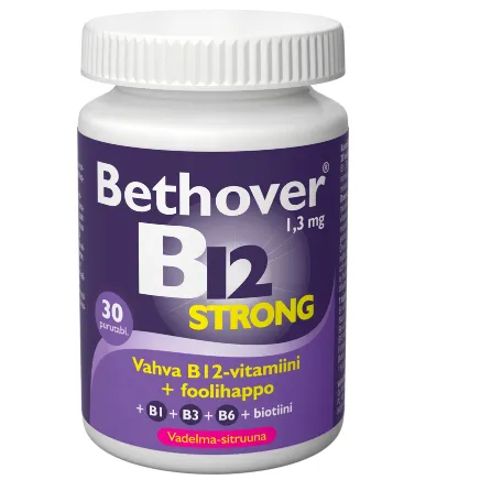 Bethoven Strong B12 малиново-лимонный - специально разработан для улучшения памяти. Содержит витамин В12, фолиевую кислоту, витамин В1, витамин В3, витамин В6 и биотин. Они способствуют нормальной работе нервной системы, нормальному функционированию психики. Витамины В3, В6 и В12, а также фолиевая кислота помогают снизить синдромы усталости. Идеально подходит для растительной диеты, поскольку витамин В12 естественным образом присутствует в значительном количестве только в продуктах животного происхождения.