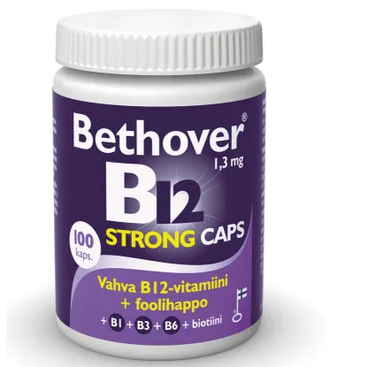 Bethoven Strong Caps - универсальные витамины с В12 для максимальной поддержки памяти, снижения усталости и поддержания хорошего самочувствия и настроения. Препарат содержит широкий спектр витаминов группы В, особенно витамин В12 и фолиевую кислоту. Входящие в состав продукта витамины В1, В6, В12 и биотин способствуют нормальной работе нервной системы. В3, витамин В12 и фолиевая кислота помогают уменьшить усталость.
