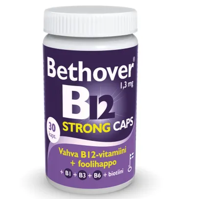 Bethoven Strong Caps - универсальные витамины с В12 для максимальной поддержки памяти, снижения усталости и поддержания хорошего самочувствия и настроения. Препарат содержит широкий спектр витаминов группы В, особенно витамин В12 и фолиевую кислоту. Входящие в состав продукта витамины В1, В6, В12 и биотин способствуют нормальной работе нервной системы. В3, витамин В12 и фолиевая кислота помогают уменьшить усталость.