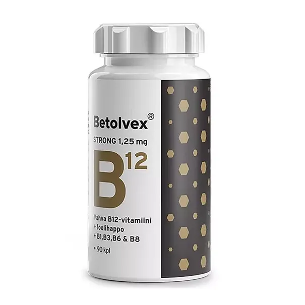 Высококачественный и универсальный витамин группы B для людей среднего возраста, пожилых людей, а также для страдающих от мальабсорбции и целиакии. Бетолвекс Стронг содержит 1,25 мг витамина B12 и другие основные витамины группы В в этой же капсуле. Витамин В12 способствует нормальному функционированию нервной системы, витамин В1 способствует нормализации психологических функций, фолиевая кислота и витамин B6 поможет уменьшить усталость и нервное истощение.