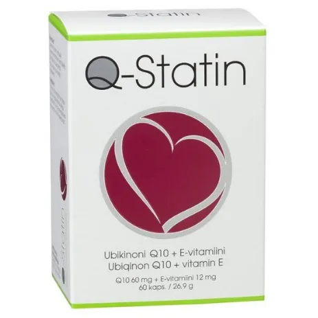 Q-Statin помогает восстановить энергию и поддерживать бдительность и работоспособность, мозговую активность. Q Statin - это мощная добавка с убихиноном, которая также содержит витамин Е, усиливающий действие убихинона. Убихинон является незаменимым соединением для выработки энергии клетками. Капсула разработана на основе растительного масла. Собственное производство в организме убихинона уменьшается с возрастом, так же на уменьшение влияет холестерин. Витамин Е в Q-stat защищает клетки от окислительного стресса.