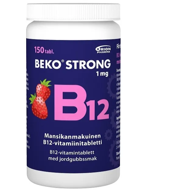 Витамины со вкусом клубники Beko Strong усиленные В12 - препарат с высоким содержанием витамина В12 для ежедневного приема. Небольшая по размеру таблетка со вкусом настоящей клубники содержит 1 мг витамина В12 (цианокобаламина). Beko Strong B12 подходит для пожилых людей, вегетарианцев и людей с низким или пониженным потреблением витамина B12. Витамин В12 способствует нормальному функционированию нервной системы и нормализации психологических функциям.