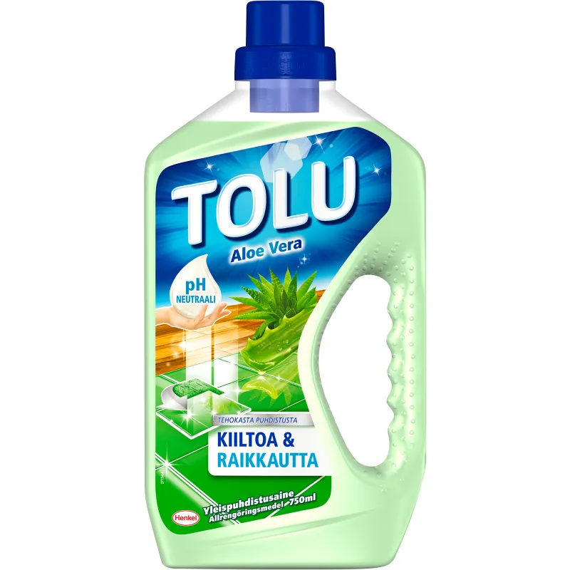 Tolu Aloe Vera – это инновационное универсальное чистящее средство, которое устраняет мельчайшие царапины и возвращает поверхности её первоначальный блеск. Его 6-компонентная формула эффективно удаляет жир и грязь с очищаемой поверхности. Свежий и чистый аромат сохраняется надолго после уборки! Средство можно использовать как в разбавленном, так и в неразбавленном виде для особо сложных загрязнений. Очищенную поверхность не нужно ополаскивать или сушить. Формула продукта не содержит фосфатов. Объём упаковки 750 мл.