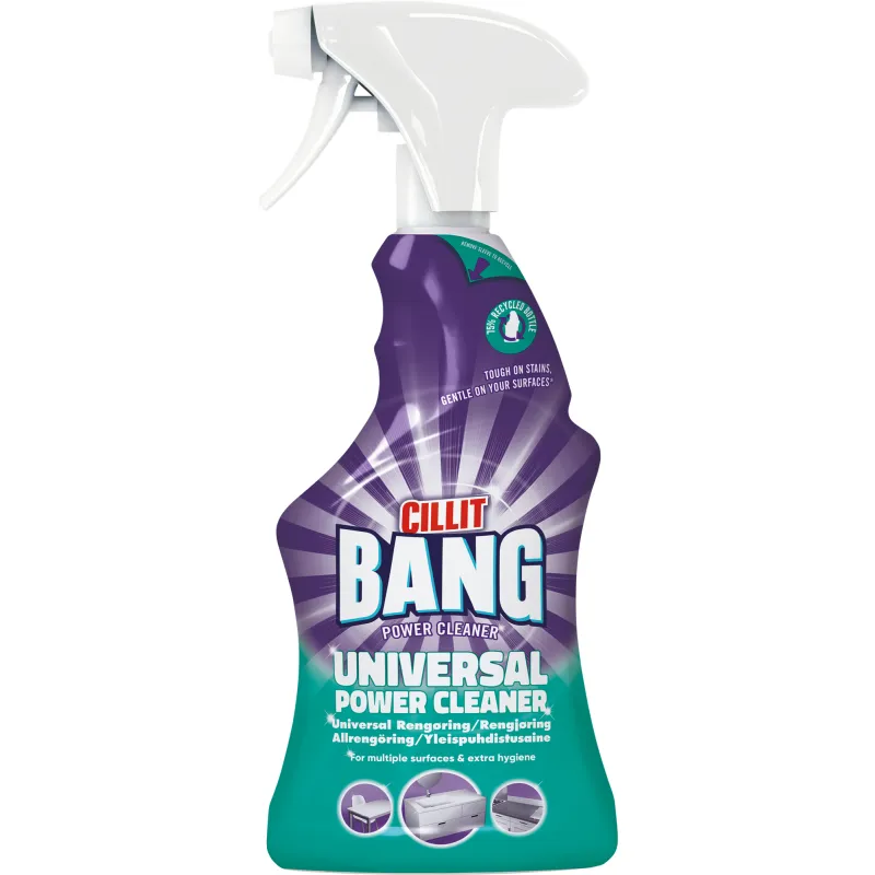 Универсальное чистящее средство Cillit Bang эффективно удаляет грязь и стойкие пятна с различных поверхностей. С его помощью вы легко добьетесь безупречной чистоты и гигиены в вашем доме! Просто распылите средство на грязную поверхность, дайте подействовать до 5 минут и тщательно промойте водой. Флакон с распылителем подлежит вторичной переработке. Объем упаковки 750 мл.