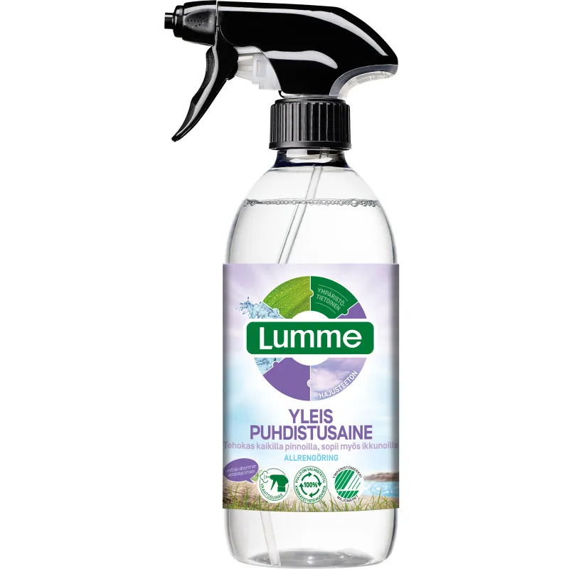 Универсальный очиститель Lumme — это мощное средство для очистки, которое подходит для всех поверхностей, включая стекло и зеркала. Этот безароматный спрей содержит только тщательно отобранные ингредиенты из возобновляемых источников. Экологически безопасное производство: пенообразующий спрей меньше выделяет аэрозолей в воздух, а бутылка изготовлена из 100% переработанного пластика. Очищает без оставления следов.