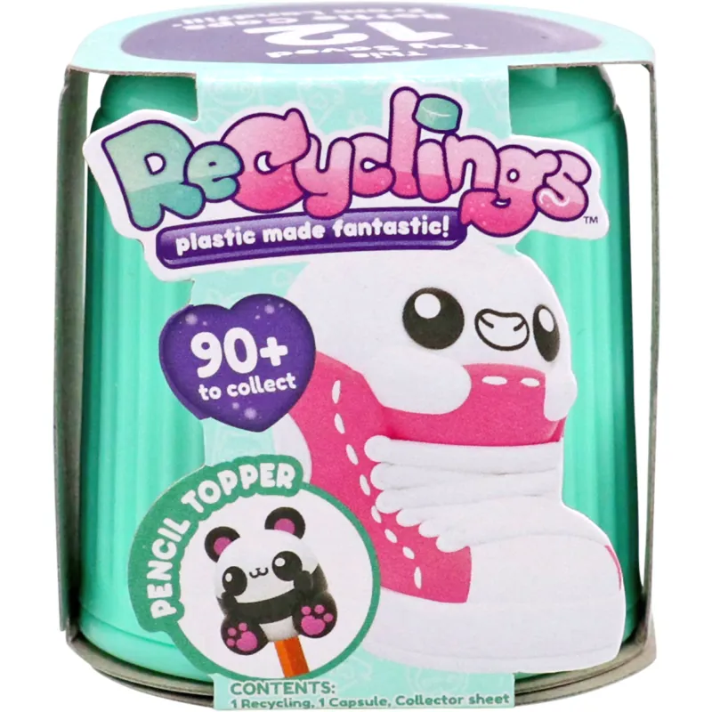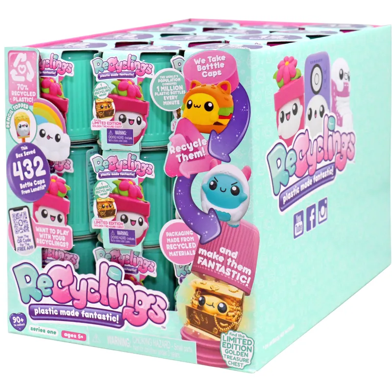 Фигурка Recyclings изготовлена из 70% переработанного пластика. Упаковка содержит одну случайную фигурку. Всего доступно 48 различных фигурок.