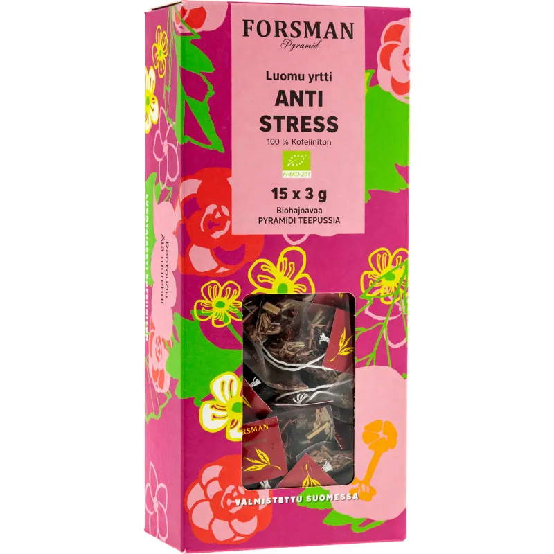 Ароматизированный травяной чай Forsman Premium Anti-Stress сочетает в себе насыщенный вкус гибискуса, шиповника, боярышника и лимонника. Этот чай не содержит кофеина и идеально подходит для расслабления и снятия стресса после напряженного дня. Упаковка содержит 15 пакетиков по 3 г каждый.