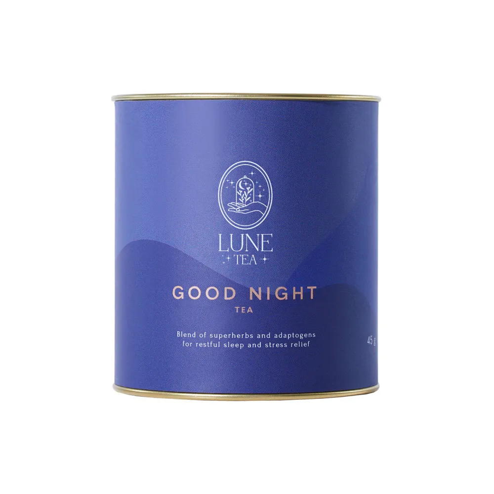 Из всех звезд ассортимента Lune Tea этот чай сияет ярче всех! Травяной чай "Good Night" содержит адаптогены – натуральные вещества, которые помогают организму справляться со стрессом и улучшать качество сна. Идеальный вечерний чай для тех, кто чувствует себя напряженным и перегруженным или когда беспокойство мешает заснуть. Этот чайный микс успокаивает как тело, так и разум, и самое главное, делает это полностью натурально!