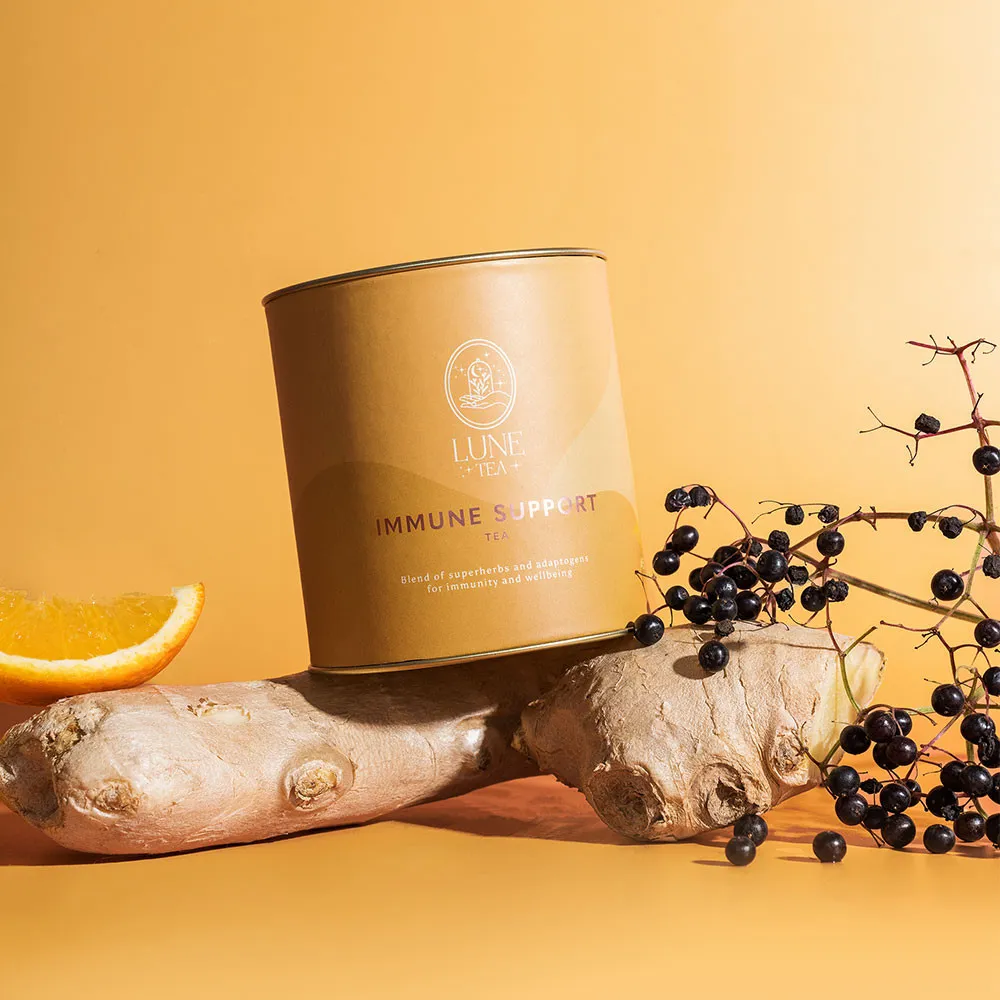 Этот согревающий травяной чай содержит адаптогены (натуральные вещества, помогающие организму справляться со стрессом) и специи, которые выступают природными усилителями иммунной системы. «Immune Support» богат витамином C. Среди ингредиентов также есть красный перец, содержащий капсаицин с противовоспалительными, антибактериальными и антисептическими свойствами, адаптоген священный базилик, известный как «эликсир жизни», используемый в аюрведической медицине более 3000 лет, и эхинацея, растение, укрепляющее иммунитет, использовавшееся коренными жителями Северной Америки.