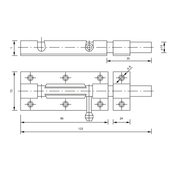 Задвижка дверная, 90 мм по основанию, оцинкованная — Характеристики