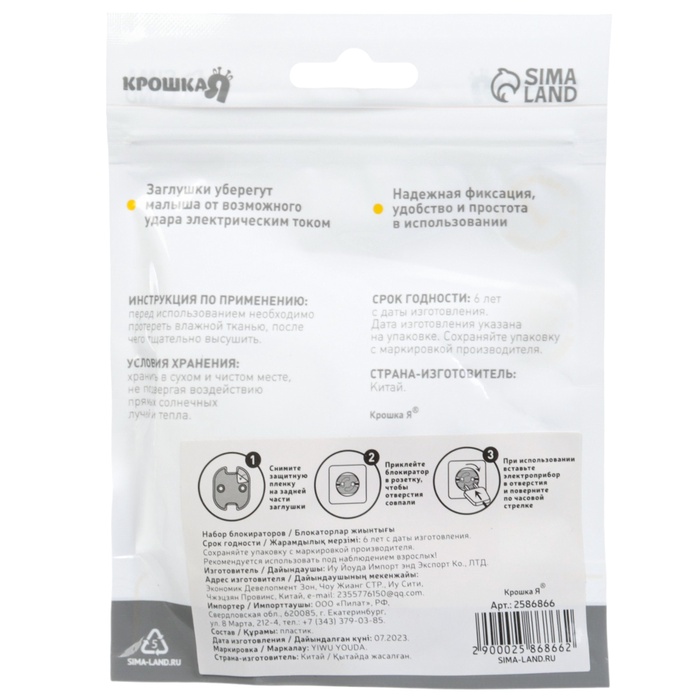 Заглушка для розетки Крошка Я, набор 6 шт., белый — Характеристики