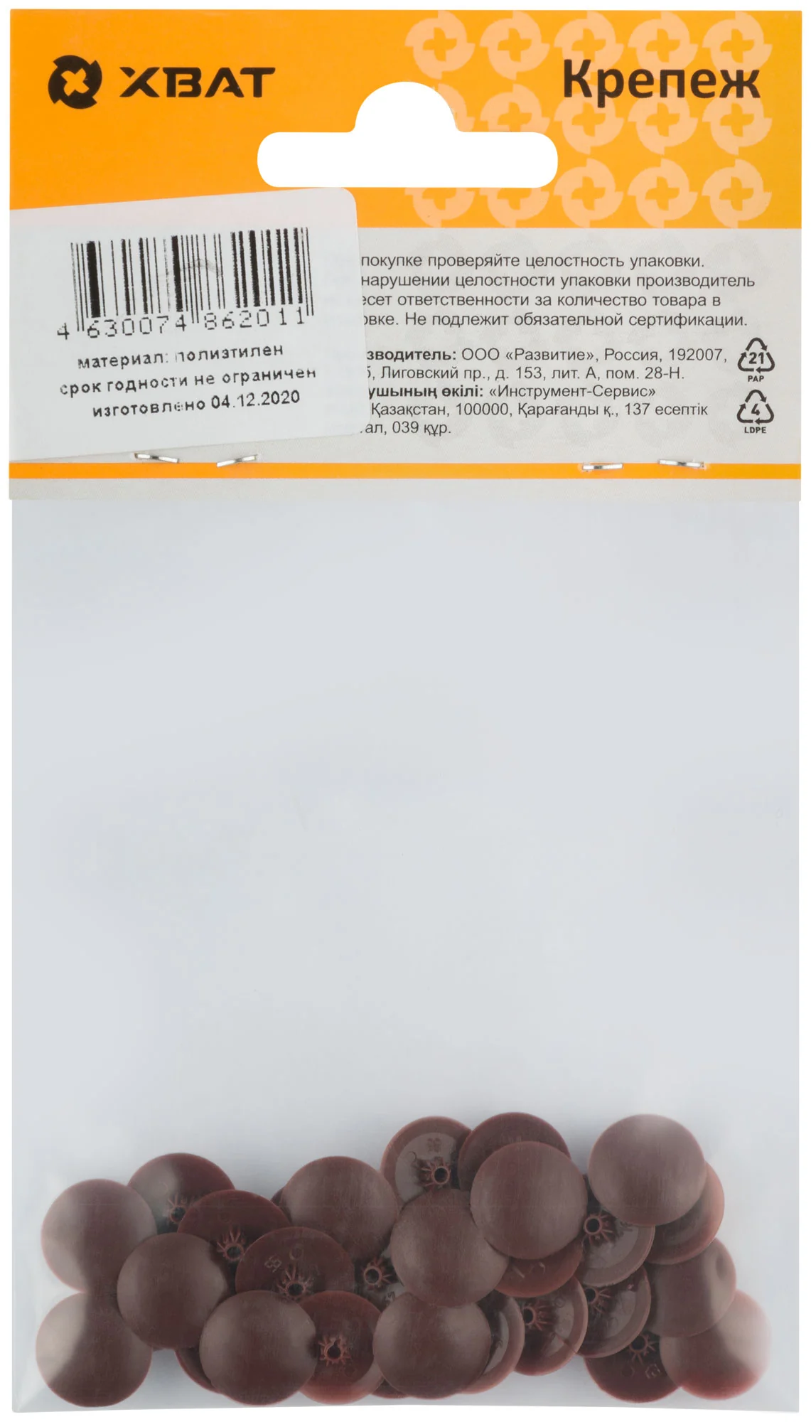 Изготовлены из прочного полипропилена, тонированного в цвет красного дерева. Заглушки предназначены для шлицов PH2, что делает их универсальными для большинства стандартных саморезов.