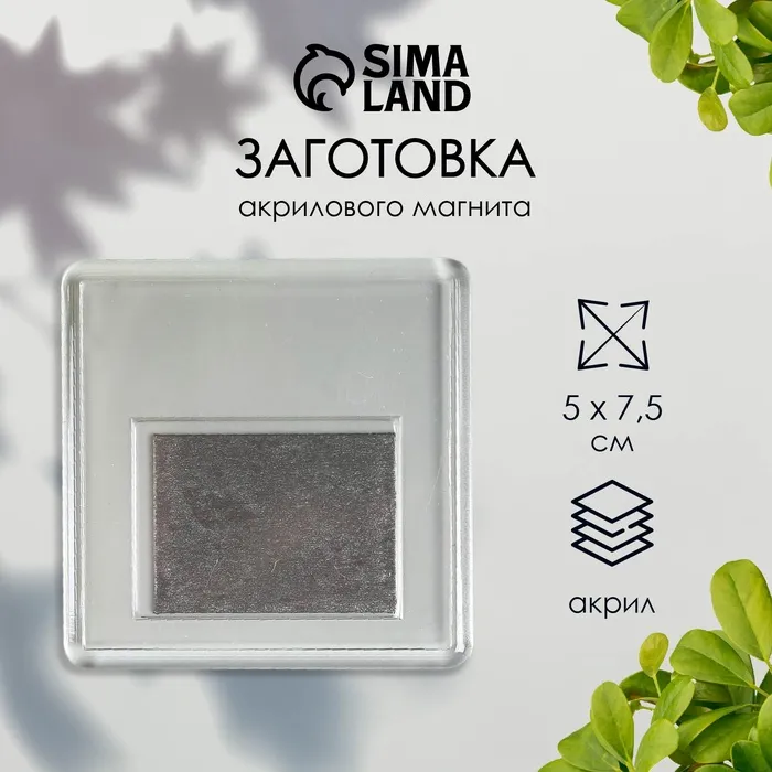 Заготовка акрилового магнита, 6.3×6.3 см, прозрачный, (набор 2 детали+пакет) — Характеристики