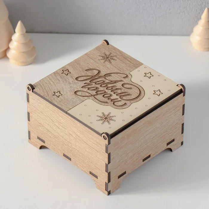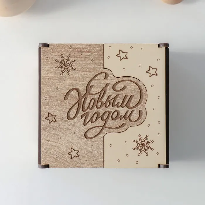Заготовка новогодняя шкатулка комбинированная "С Новым годом" 10,5х10х7 см — Характеристики