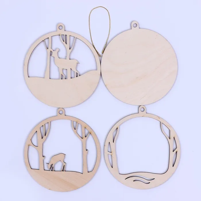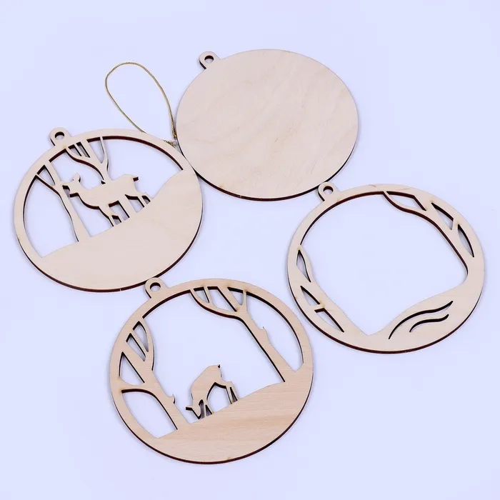 Заготовки для творчества. Деревянная ёлочная подвеска «Новый год! Олени в лесу» — Характеристики