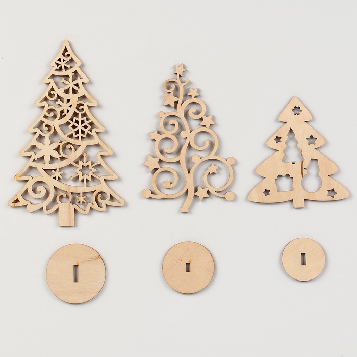 Заготовки для творчества на новый год «Елочки на подставке», 3 шт — Характеристики