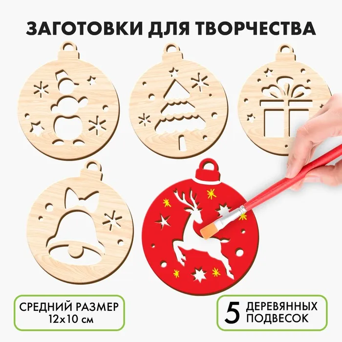 Создай неповторимый элемент новогоднего декора из заготовок для творчества «Шары с простыми рисунками»!