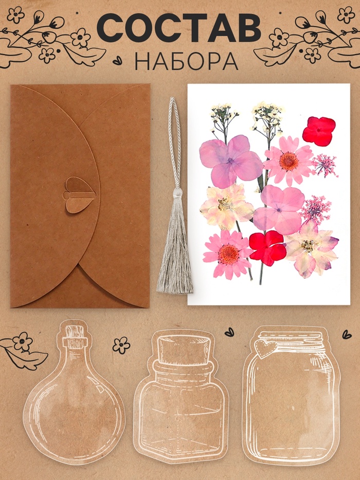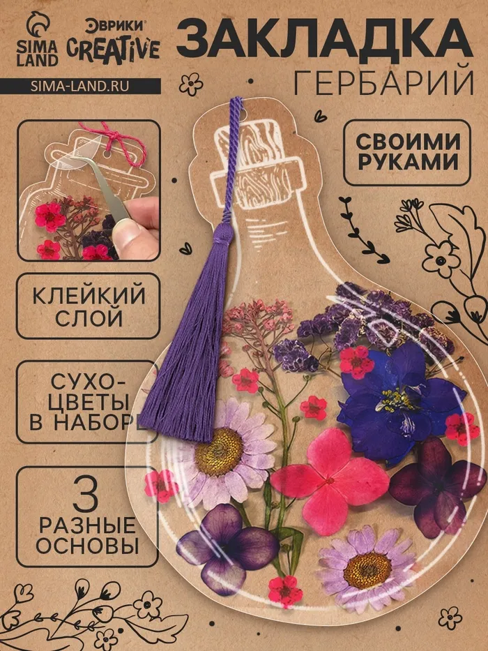 Набор для творчества «Закладки - гербарий» — это оригинальный способ сохранить воспоминания о лете и создать уникальные аксессуары для книг и блокнотов. В комплекте 3 прозрачных закладки в форме колб, флаконов и баночек, и сухоцветы. Внутрь можно вложить засушенные цветы, листья и другие растения, создавая неповторимые миниатюрные композиции.