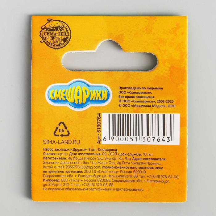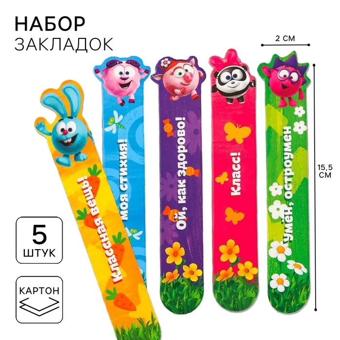 Закладки для книг, фигурные из картона, 5 шт. «Друзья», Смешарики — Характеристики