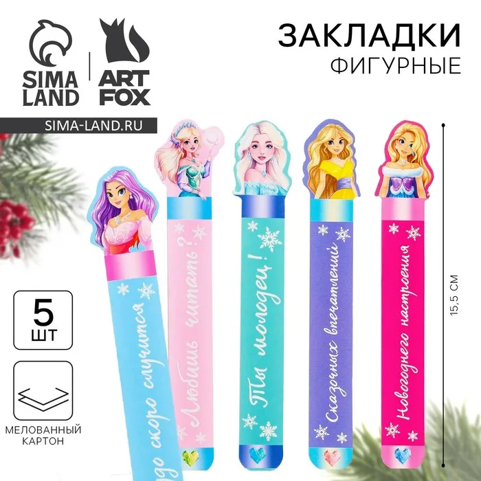Закладки для книг, фигурные из картона, 5 шт. «Новый год: Для самой красивой принцессы» — Характеристики