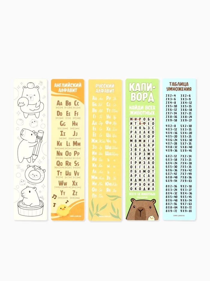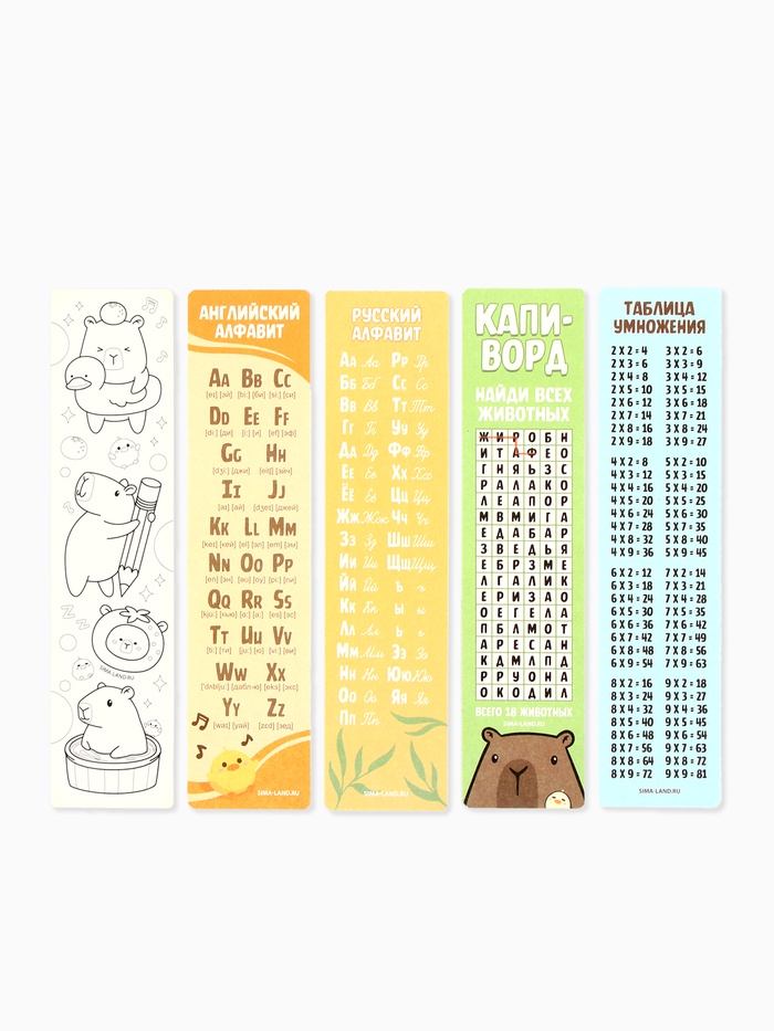Закладки для книг картонные 5 шт., шпаргалки «Капибара» — Характеристики