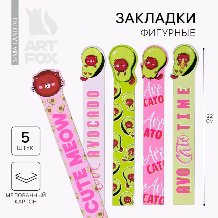 Закладки фигурные, картонные 5 шт «Авокадо» — Характеристики