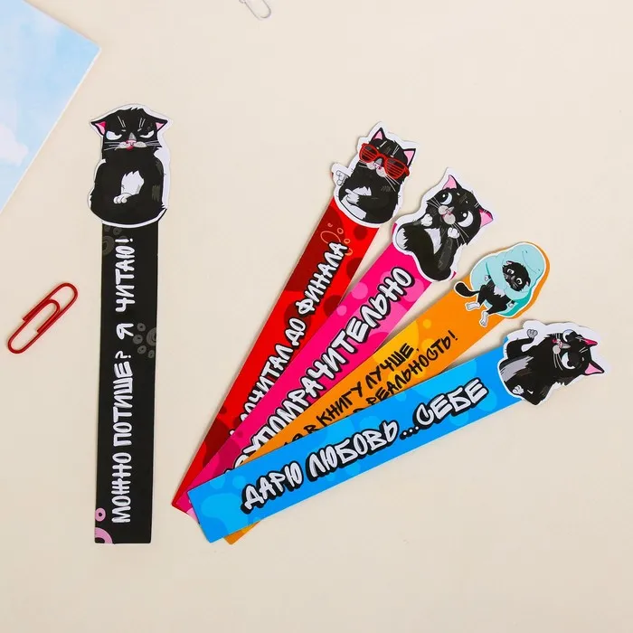 Закладки фигурные, картонные 5 шт «Книжный кот»
