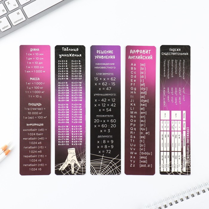 Закладки картонные, шпаргалки 5 шт «Готика»