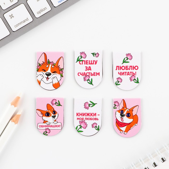 Закладки магнитные, 6 шт. «Корги. 8 марта»