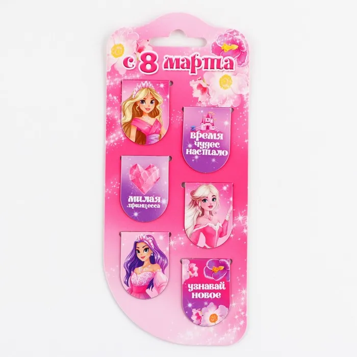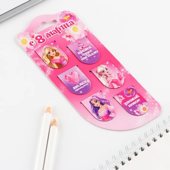 Закладки магнитные, 6 шт «Принцессы, с 8 марта» — Характеристики