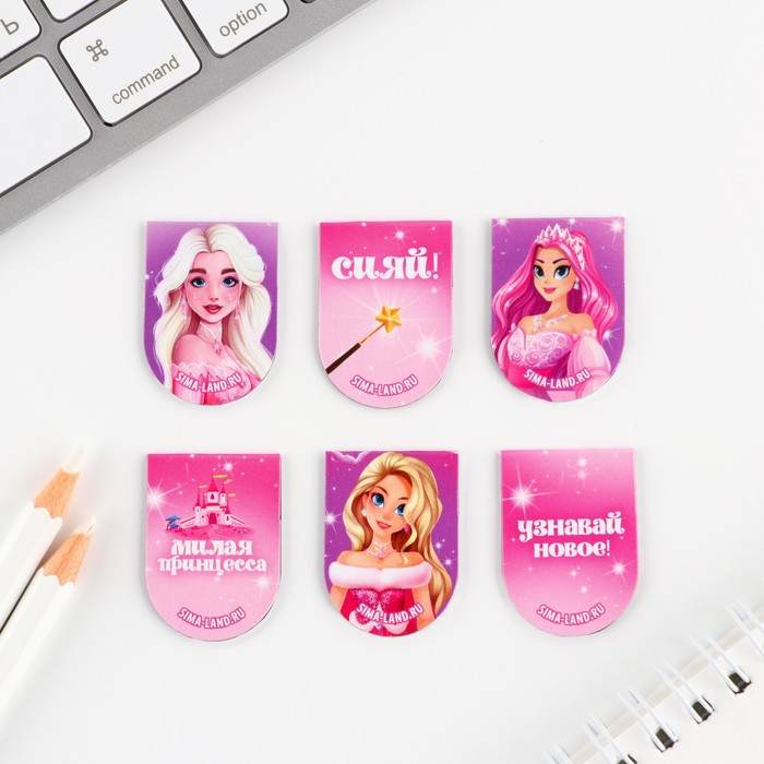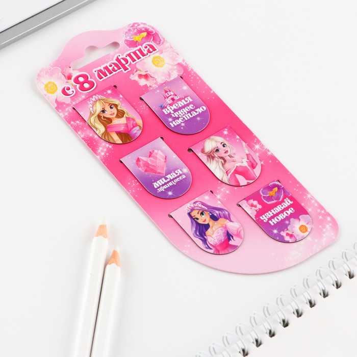 Закладки магнитные, 6 шт «Принцессы, с 8 марта»