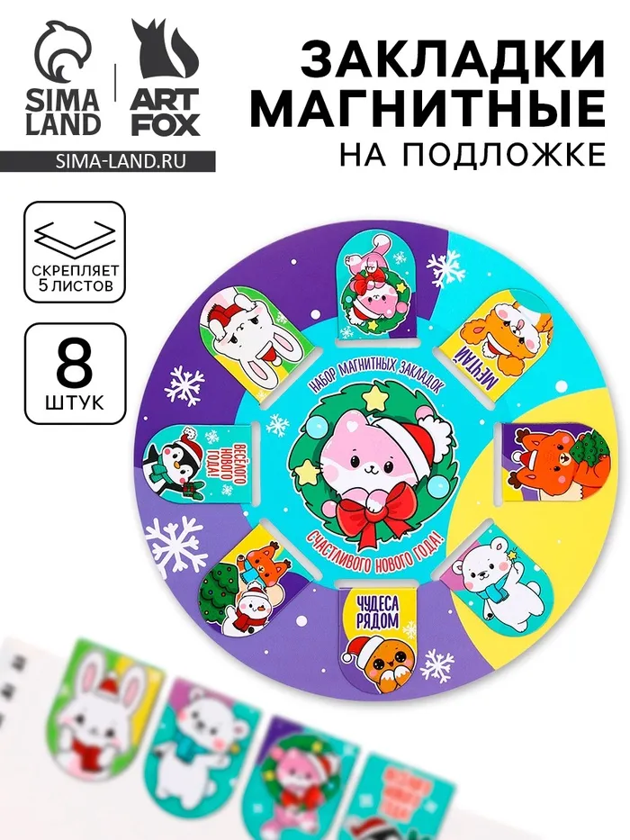 Закладки магнитные 8 шт. на подложке «Милые зверюшки» — Характеристики