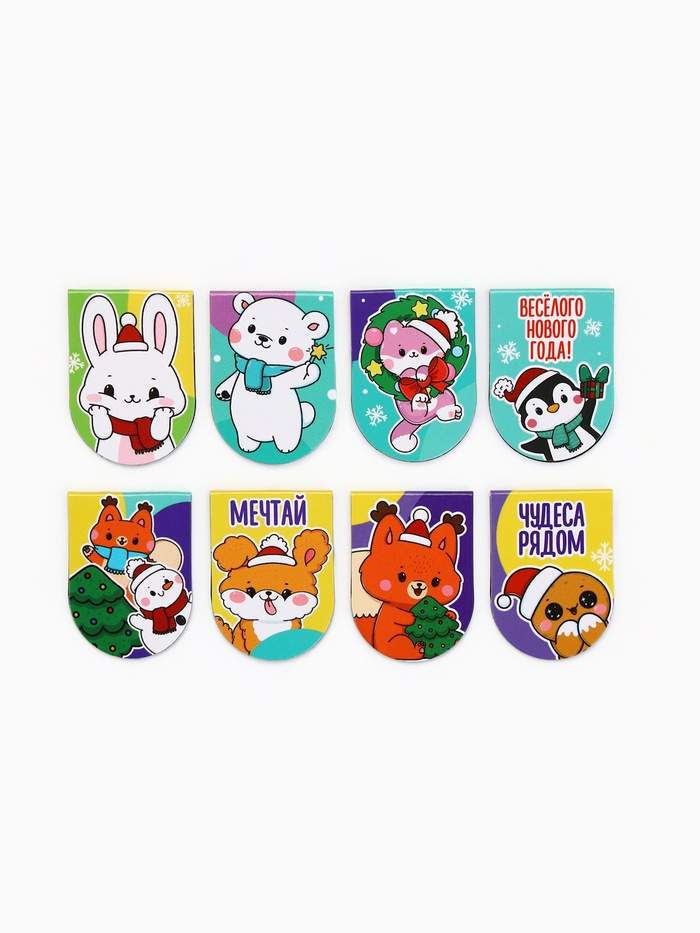 Закладки магнитные 8 шт. на подложке «Милые зверюшки»