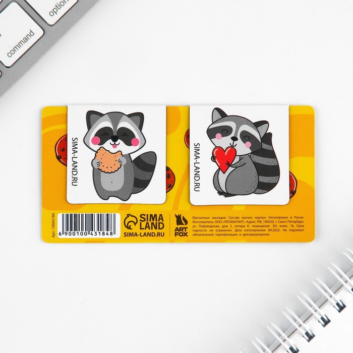 Закладки магнитные для книг, 2 шт. «Енот» — Характеристики