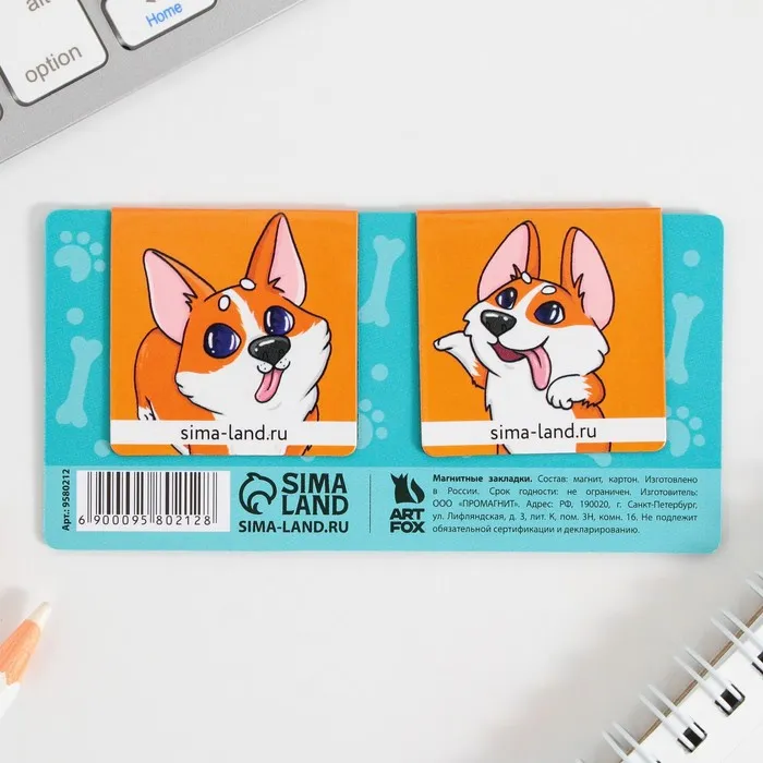 Закладки магнитные для книг, 2 шт «Корги» — Характеристики