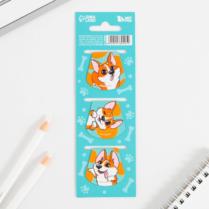 Закладки магнитные для книг, 3 шт «Корги» — Характеристики