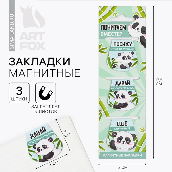 Закладки магнитные для книг, 3 шт «Панда» — Характеристики