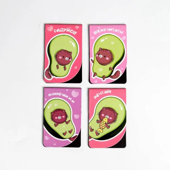 Закладки магнитные для книг, 4 шт «Авокадо»